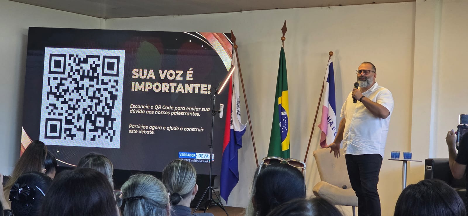 Na sequência, o psicanalista Eli Reis abordou a saúde emocional, reforçando a importância do equilíbrio psicológico no cotidiano. O evento também contou com participação ativa do público, com perguntas sendo enviadas em tempo real por meio de QR Code exibido no telão.